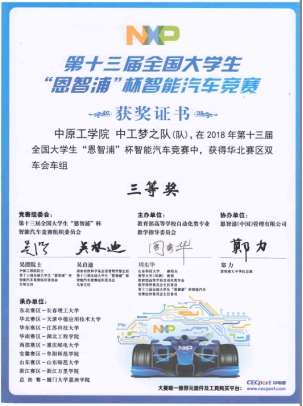 2018年度全国大学生“恩智浦”杯智能汽车竞赛华北赛区二等奖1项、三等奖1项。