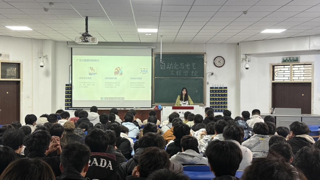 面向25级新生成功举办了“启航·心成长”心理健康主题年级大会。本次大会围绕行为规范、礼仪修养、兴趣培养等多个与心理健康息息相关的维度展开,旨在帮助新生从入学伊始便建立起全面、积极的自我认知与成长框架,为未来四年的专业学习与个人发展奠定坚实的心理基础。